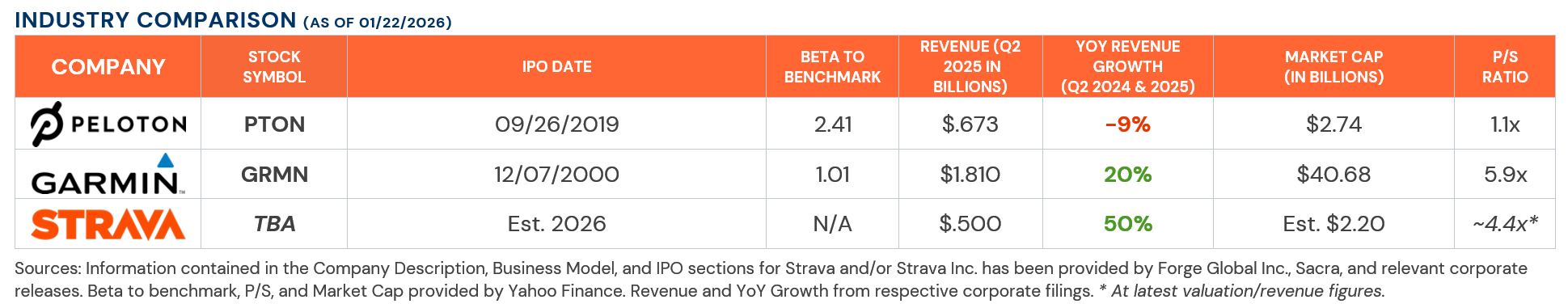 CEO Michael Martin announced plans to take Strava public in October 2025, filing a confidential S-1 in January 2026. The IPO’s lead underwriter is Goldman Sachs, and proceeds are earmarked for acquisitions and strategies to engage Gen Z users. Going into 2026, Strava continues to grow in usership, offerings, and community engagement following the COVID boost to the athletic market. This is driven by increased user data insights and AI integration following the acquisition of the app Runna. This continued growth deviates from similar gainers such as Peloton’s hardware-reliant model, which has continued to see declining revenue post-pandemic.